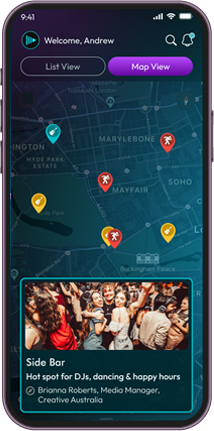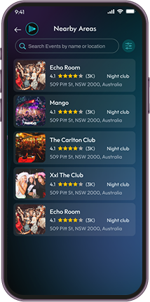 Explore nearby concerts, bars, and venues with ease.